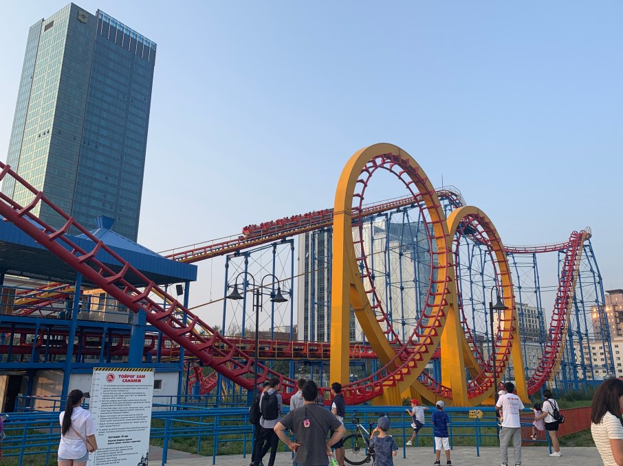 The National Amusement Park is also known as the Children’s Park. It’s literally across the street from our house! It’s free to go in.. you just have to pay for the attractions, which range from 4,000 – 10,000MNT ($1 – $4USD). It’s pretty cool to wander around.. and I was shocked to see so many people going on all the rides!